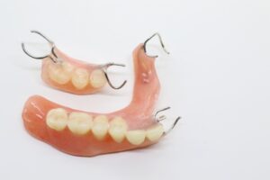 部分入れ歯は、取り外し可能な人工の歯です。金属のバネで隣の歯に固定し、必要に応じて取り外して洗えます。