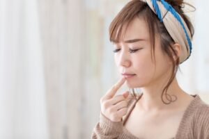 さらに、唾液が少なくなることで味覚が鈍くなり、「味がしない」「食事がおいしく感じられない」といった症状が現れることもあります。こうしたドライマウスの状態は、特に50代以降の女性に多く見られ、加齢による唾液腺の機能低下やホルモンバランスの変化、服薬の影響などが関係していると考えられています。